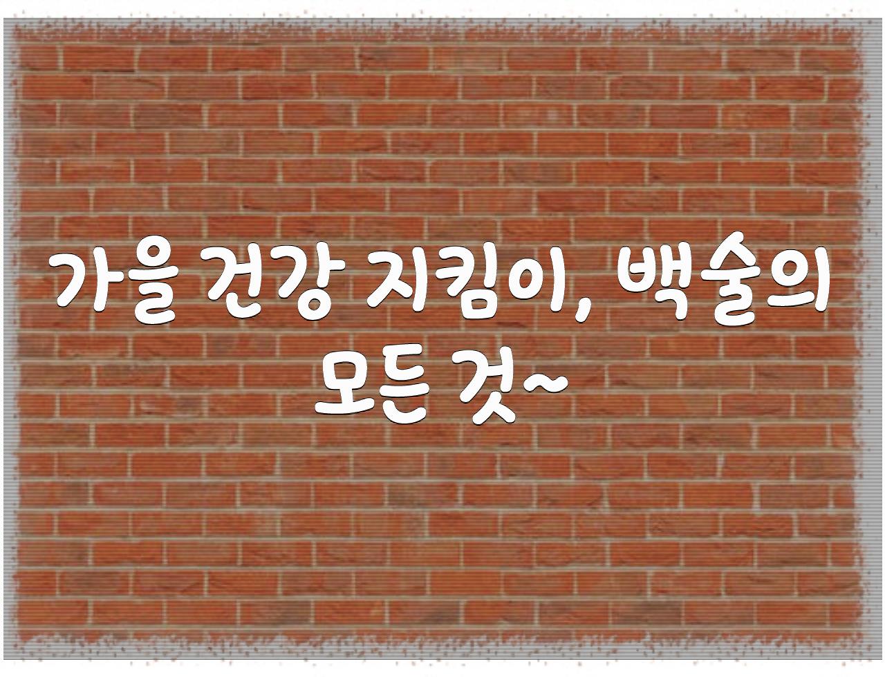 바람이 살짝 서늘해지고 단풍잎이 붉게 물드는 가을철, 여러분의 건강은 잘 지내고 계신가요? 자~ 그럼, 가을 건강 지킴이, 백술의 모든 것~ 관련 제대로 확인 해 보실까요?