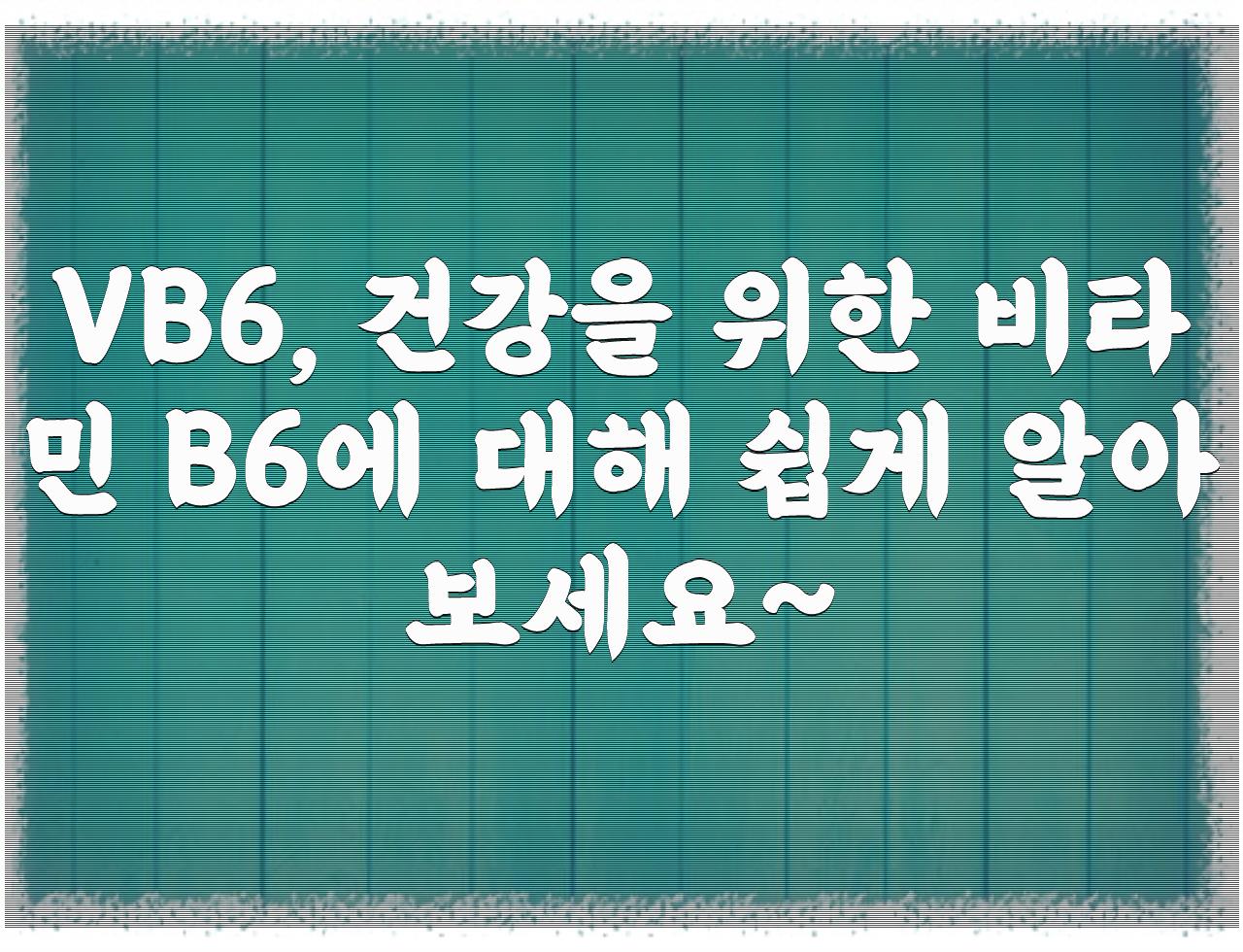 VB6는 뭐예요? 자~ 그럼, VB6, 건강을 위한 비타민 B6에 대해 쉽게 알아보세요~ 관련 제대로 알아보실께요.