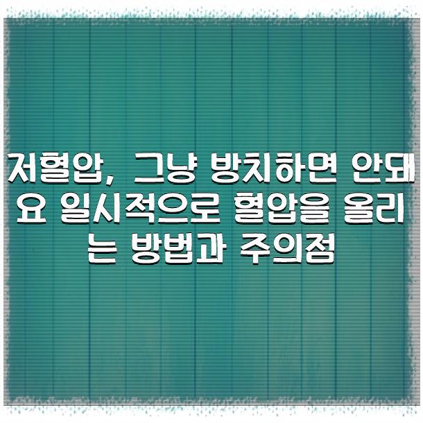 이 글에서는 저혈압으로 어려움을 겪는 분들을 위해 일시적으로 혈압을 올리는 방법과 주의점을 자세히 알려드리겠습니다. 또한, 저혈압이 단순한 증상이 아닌 심각한 질병의 징후일 수 있다는 점을 강조하고, 혈압 관리의 중요성을 다시 한번 일깨워 드리고자 하다.